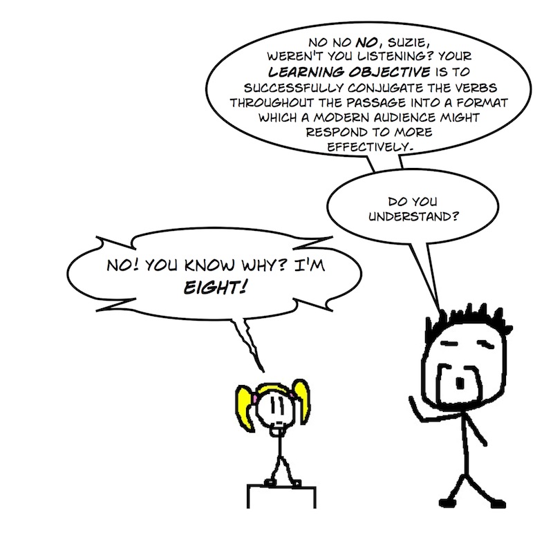 Remember: eight- and nine-year olds. Do they really need to know terminology like "learning objective" and "success criteria"? I am yet to meet a child who actually knows why they write down the learning objective and success criteria other than "it's the stuff we copy at the start of the work, innit". The sole purpose for it is so when the inspectors come to play that the teachers can point proudly at the various learning objectives and say "Look! They've done this!".