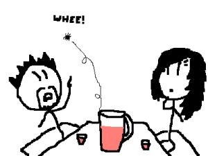 No. Talking with someone you respect and trust is always good. So that's what a friend (who shall remain nameless to spare her blushes) and I did today. We spent most of the day (well, afternoon) sitting and chatting over various beverages and sandwiches, starting with an enormous caramel latte (which my companion added at least three sugars to just for that "extra kick", making a smiley face from the sugar and then stabbing it in the eyes because it "didn't deserve to be happy") and eventually moving on, having harassed our AV salesman mutual buddy at his place of work, to a large pitcher of delicious, summery, fruity cocktail atop the roof of Vodka Revolution.