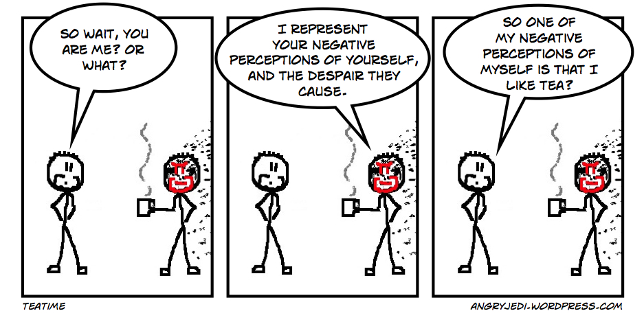 He closed the fridge and was about to walk out, when he heard a clattering from outside the break room door. It sounded like someone was coming. Jeremiah didn't know what to do. The only way out of the break room was through the door he'd come in by, and that was where the sounds were coming from. He looked around frantically and eventually opted to dive under a chair and hope whoever was coming wouldn't see him. He heard the door open, and a ticking noise, along with what sounded like something being dragged along the floor.