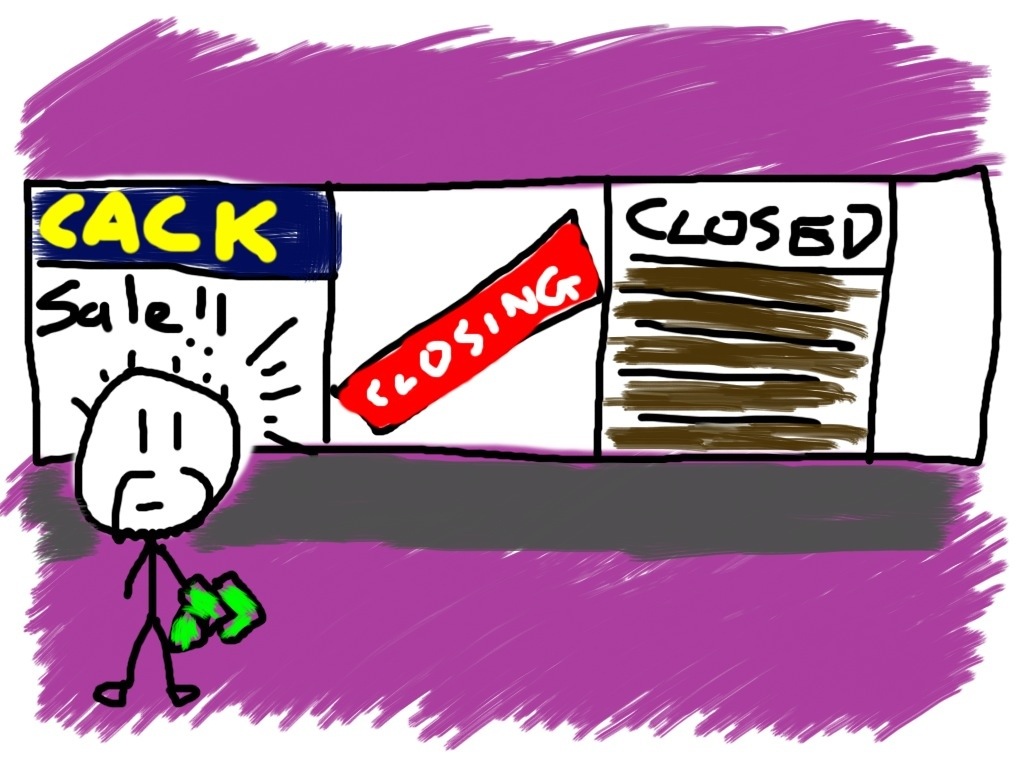 The oft-mentioned "economic downturn" (which has been turning downwards for so long surely it's completely upside down by now) has had wide-ranging effects — or, at the very least, things have happened which people feel can be attributed to said economic downturn. A lack of jobs meaning highly qualified people are forced to sit at home in their pants watching The Jeremy Kyle Show. Currency devaluation and something about inflation, which I shan't pretend to understand even a little bit. And, of course, the demise of the High Street.