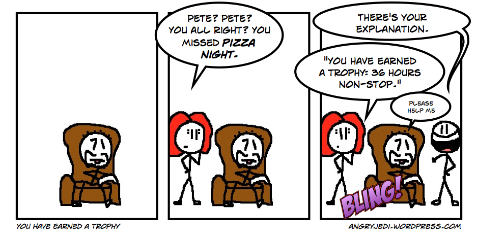 Apparently we are. I'm not judging you if you're one of those people who likes (if that's the right word) chasing Platinum trophies. I'm saying that I find it completely unfathomable. I have no desire to grind my way through abject tedium purely so I can get a differently-coloured virtual trophy that no-one will look at or care about. I don't beat a game, look at that trophy list and feel I've not had my money's worth if I haven't got 100% of the game's trophies. I beat a game, roll the credits and then, in most cases, move on to any one of the bajillion other titles waiting on my Pile of Shame — which, I have to admit, has only got bigger during the recent Steam summer sale.