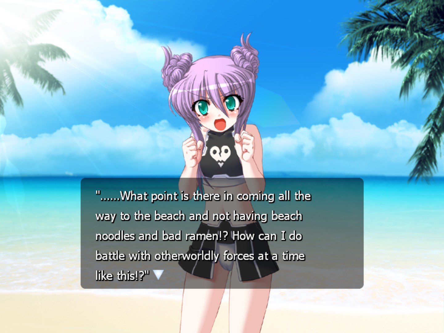 All right, now we've got rid of those killjoys, let's talk Demonbane. First up, an interesting thing about Demonbane is that it is super-long — like, 20 hours. A single playthrough of your average VN, assuming you read everything and don't skip straight to the bonking, usually takes on average between 5-10 hours depending on the game. Something like School Days HQ, which has a lot of alternative routes and branching paths, tends to be a little shorter, whereas something with a smaller number of discrete routes tends to take its time a bit more. For comparison's sake, it took me just under 40 hours to see absolutely everything Katawa Shoujo had to offer, and there are five distinct routes in that. (That's about 8 hours per route if you're a bit slow on the old maths.)