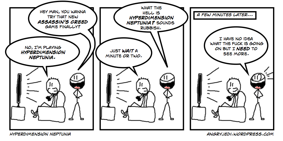 I fancied something light-hearted and silly, so I chose Hyperdimension Neptunia. I knew nothing about this prior to starting to play, and just knew that it was rather silly, very Japanese, packed with rather unnecessary fanservice (that I secretly quite enjoy) and not necessarily what you'd call "good" by the traditional definition. However, given that many of the games I've enjoyed most of all over the course of the last year have not been what you'd call "good" by the traditional definition (Nier springs immediately to mind) I was willing to give it a chance.