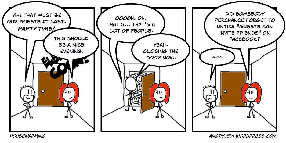 Then you get to university, and "parties" become acceptable again, though they tend not to be tied to a particular occasion. "[Insert name of person you barely know] is having a party tonight," your housemate will say. "Want to go?" The correct response is, of course, "yes," because undoubtedly there will be a ton of drink, possibly stuff to eat and, in the eyes of a horny late-teens-early-twenties person, the potential to get laid that inevitably never comes to anything. (Not that I'm complaining; I was never really the one-night stand type.) The thing with parties of this nature, though, is that they tend to have no real purpose — they're purely social occasions designed to get people together, not a celebration of anything. They're barely even a celebration of friendship, because inevitably there'll be a bunch of people there who no-one seems to know, who will have showed up as a sort of "friend of a friend" arrangement.