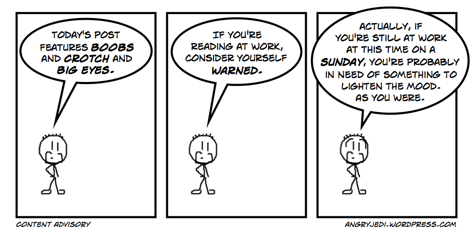 The game is stuffed full of innuendo and fanservice. The party in Hyperdimension Neptunia is exclusively female, and male characters throughout are very limited, mostly represented as silhouetted portraits alongside the huge, animated head-and-shoulders shots of the girls. There's a lot of boob-related humour, particularly surrounding the discrepancy in size between several party members' breasts, and a number of comic misunderstandings that initially appear to be somewhat sexual in nature but later turn out to be something far more innocuous. There's also a clearly-underage openly-lesbian character (though it's implied that most of the characters have at least a slight inclination in this direction), you'll see a lot of pantsu-flashing and suggestive positions (see below) over the course of the game, most of the girls wear incredibly impractical outfits (see below), and their boobies bounce on the special "event" pictures that normally accompany a character's first appearance (see below!). It's all fairly harmless and there's nothing outright pornographic; it feels cheeky and light-hearted rather than malicious or exploitative and is certainly no worse than anything seen in popular anime, but some may object to it or find it embarrassing.