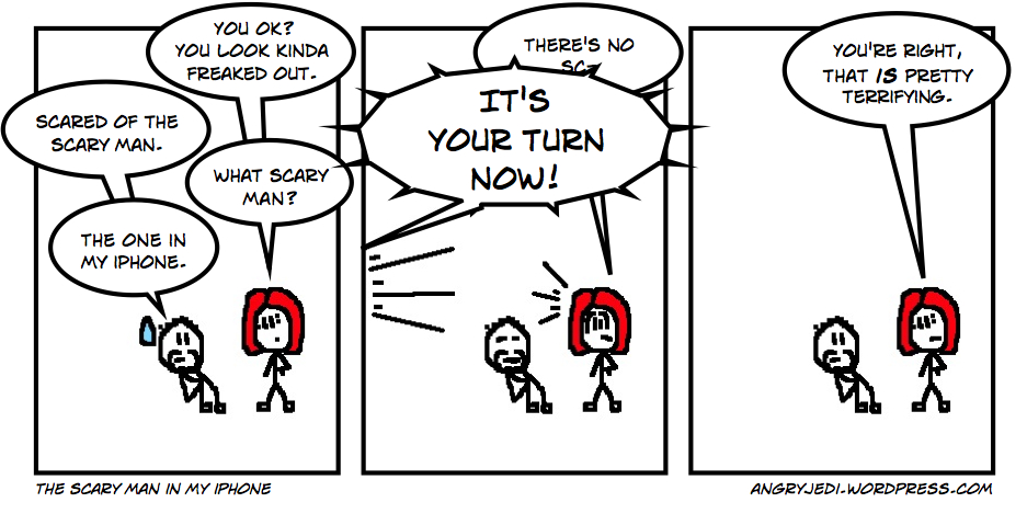 I've discovered the most terrifying thing in the universe: the man who very politely, but incredibly loudly, tells you "It's your turn now!" on the iPhone version of Carcassonne. It's terrifying because hearing someone's voice when you're not expecting to — such as, say, when you're trying to get to sleep — is a frightening thing. Quite why a murderer or rapist would say "It's your turn now!" is… no, hang on, that sort of works, doesn't it? Shit.
