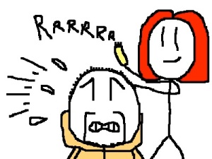The reason I did this, and the reason I bought some clippers a while back, is that my hair and I don't get along. It grows incredibly quickly, has a "sweet spot" which lasts roughly two weeks when hair gel is super-effective and allows me to shape it into something vaguely resembling an actual haircut, and then it gets ridiculously long and/or thick. At this point, I have a difficult decision to make. Do I continue to allow it to grow in the hope that some sort of inspiration will strike me and I'll be able to pull off long hair? Do I shave it all off? Or do I go to the barbers?