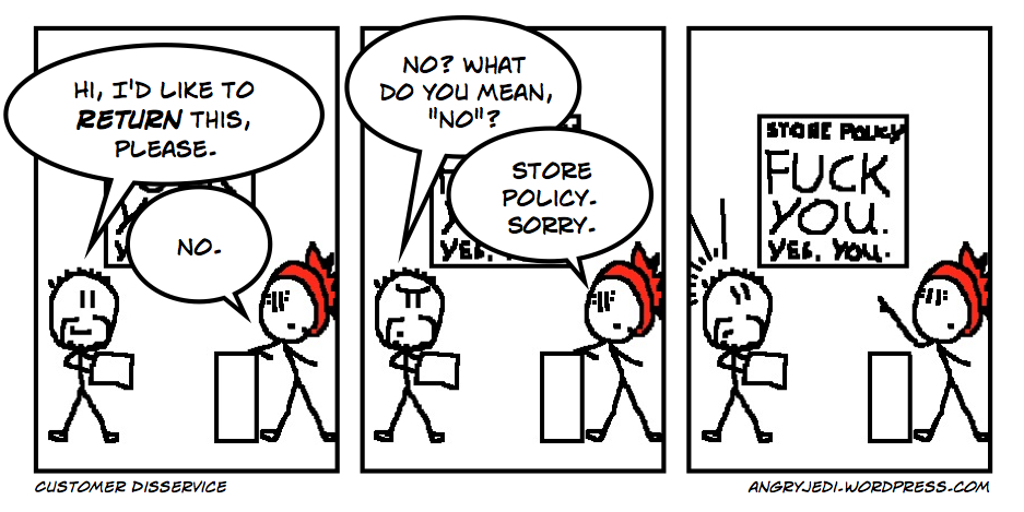 I get that people are frustrated when things don't work the way they expect and they don't know why. But receiving a message filled with swearing and abuse because you didn't think to press a single button that would immediately resolve the problem you are having — yes, this really was one of the incidents today — does not make the person who has to answer that message feel particularly inclined to want to help you. I mean, most of the time they will go out of their way to help you, even for particularly stupid questions — contrary to popular belief, there are, in fact, stupid questions — but you can rest assured that they're having a good giggle at you behind your back.