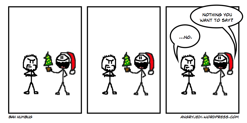 Not a great way to do things, but little else I can do right now. So you'll forgive me if I'm not exactly full of festive cheer.