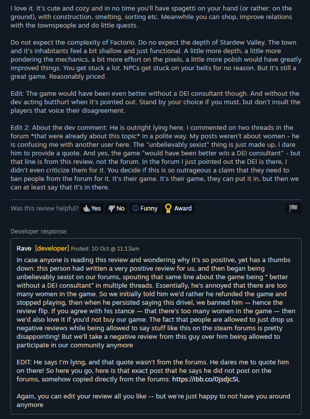 Yes, I rant and rave and complain a fair bit here — I will freely admit that! — but this place is for me. It's my place for self-expression, for self-therapy, for processing my own thoughts, feelings and emotions, and it just happens to be publicly accessible. That does not mean I crave sweaty Internet-poisoned dudes in my mentions arguing with everything I say. I am more than enough sweaty Internet-poisoned dude for myself; I certainly don't need any more.
