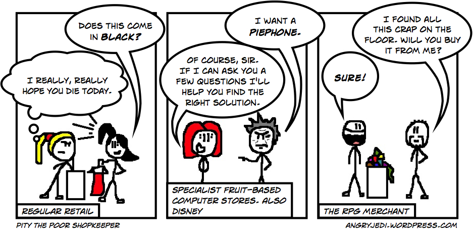 The poor shopkeeper doesn't have it easy, whatever form they take. If they're a retail monkey working for minimum wage in some sweaty hell-hole where chavs repeatedly come up and ask if the nearly-black garment they have in their hands is available in black, then they're probably losing the will to live by the second. If they're working in a, shall we say, "premium" retail environment they're probably having a better time but rapidly growing sick of the fixed grins they're forced to wear, not to mention the stock phrases that spew forth from their mouths like some form of verbal effluvia.