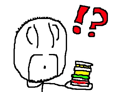 Your kitchen is messy, but you're hungry. What to do? What to do? Make a sandwich! Rummage through your fridge and cupboards for the most disparate luncheon products you can find, slap them all together between two pieces of bread that you don't think is mouldy, add at least one condiment or sauce, place it on a plate (or, if all your plates are dirty, in a bowl; if all your bowls are dirty, in a frying pan; if all your pans are dirty, in a bit of kitchen roll; if you have no kitchen roll, just pick the damn thing up) and then retire to your couch (where you may optionally turn on the TV and stare at it) and enjoy your creation before realising that your bizarre combination of cooked meats, chilli sauce, some unidentifiable fruits and vegetables you found in the baskets at the bottom of your fridge and mayonnaise doesn't really go. But you've made it now; so you're damn well going to eat the whole thing if only to be able to tell people about your magnificent creation.