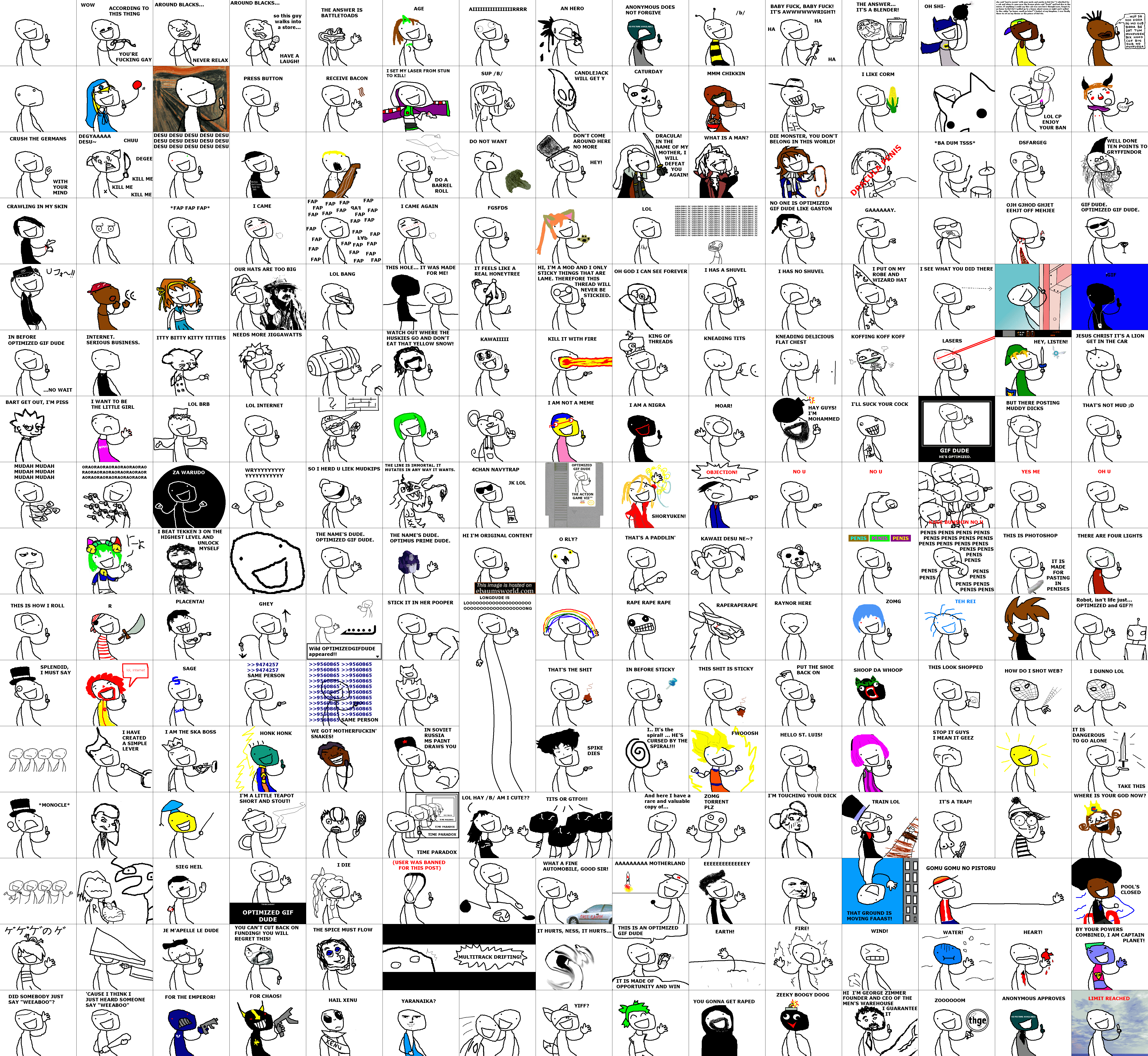 (Click to embiggen. Some NSFW. Some NSF anybody. Apparently this character is called "optimized GIF dude" and is something of a meme. I'd never heard of him, actually.)