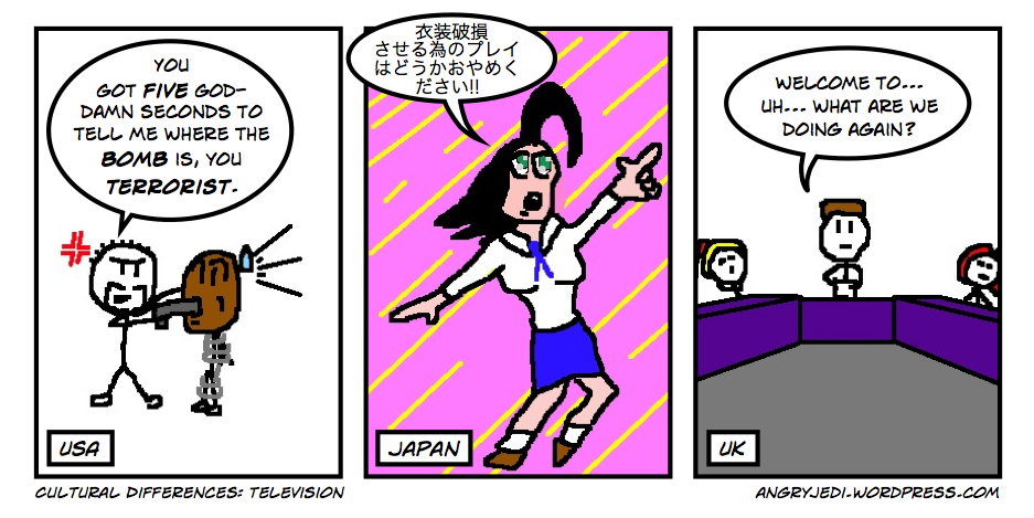 Television is generally a good indication of what to expect from a country's culture. Of course, it's not the be-all and end-all of their cultural output. Thank God. But it does give some indication of the values of that country, the things they find entertaining and their general outlook on life.