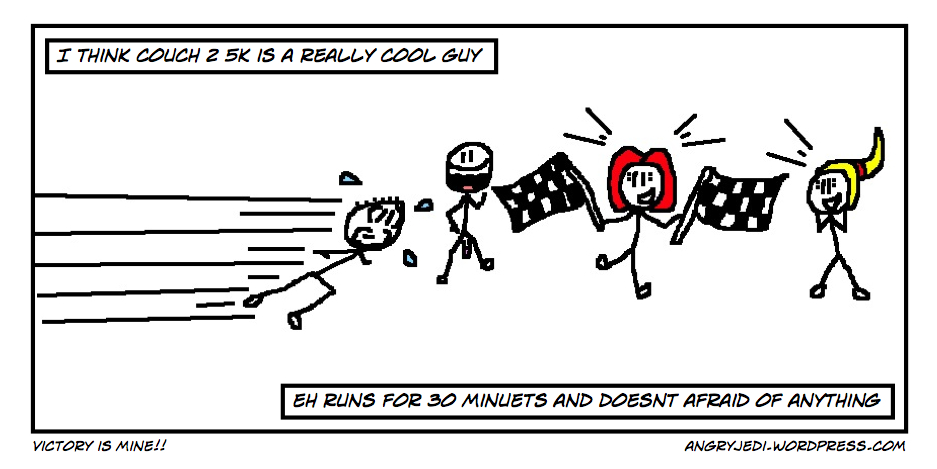 Tonight I completed the nine week Couch 2 5K running programme, introduced to me by one Mr Calin Grajko, who is a really cool guy and, I have it on good authority, doesn't afraid of anything. I've mentioned this a few times previously, but for those of you who can't be bothered to look back a few entries, have joined me recently or who are having trouble finding exactly what you want using the search box (which is fine by me), let me explain.
