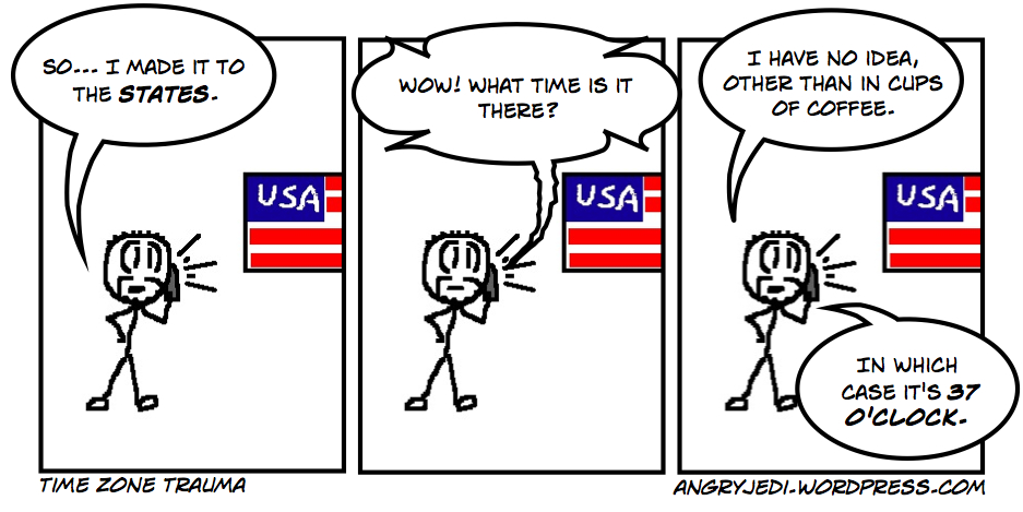 Time zones are a big pain in the arse. Particularly when you find yourself inadvertently operating on one that you don't live in. I've had a pretty ballsed-up body clock for quite a while now, but it sort of doesn't matter.