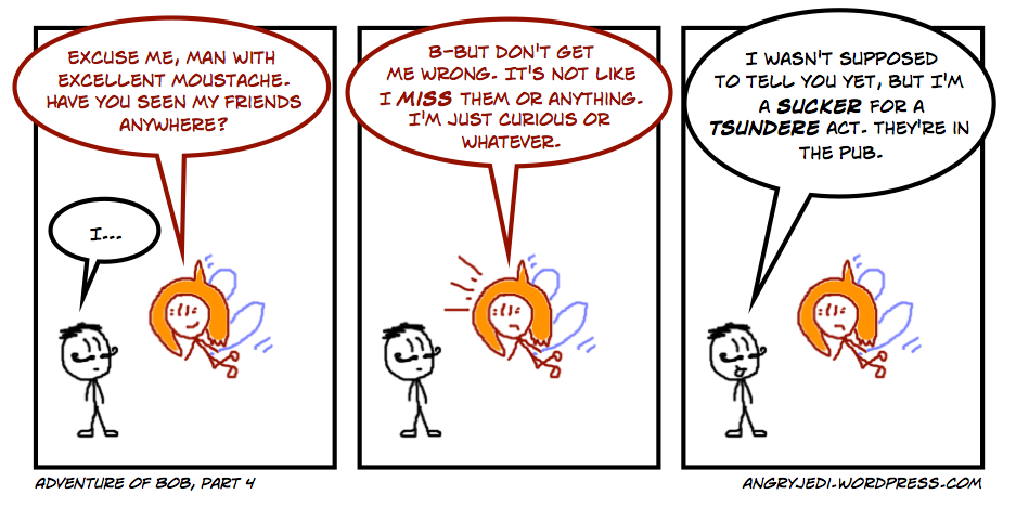 Because it was only last year that I got into all this shit, though, it was only last year that I found out what the word "tsundere" means. I had occasionally heard it mentioned by people I knew were into anime and Japanese games, but I'd never thought to look it up before — perhaps because I assumed it was an obscure, specialist piece of jargon relating to something that I wasn't, at the time, particularly immersed in.